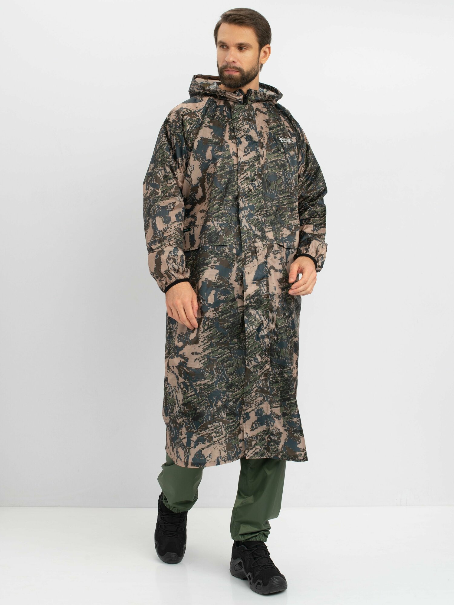 Плащ-дождевик с капюшоном мужской Huntsman ВВЗ для рыбалки, охоты влагозащитный, ткань таффета рипстоп 3000, цвет Лабиринт (р.52-54/182): сравнение цен, характеристики, фото, актуальное наличие и цены.