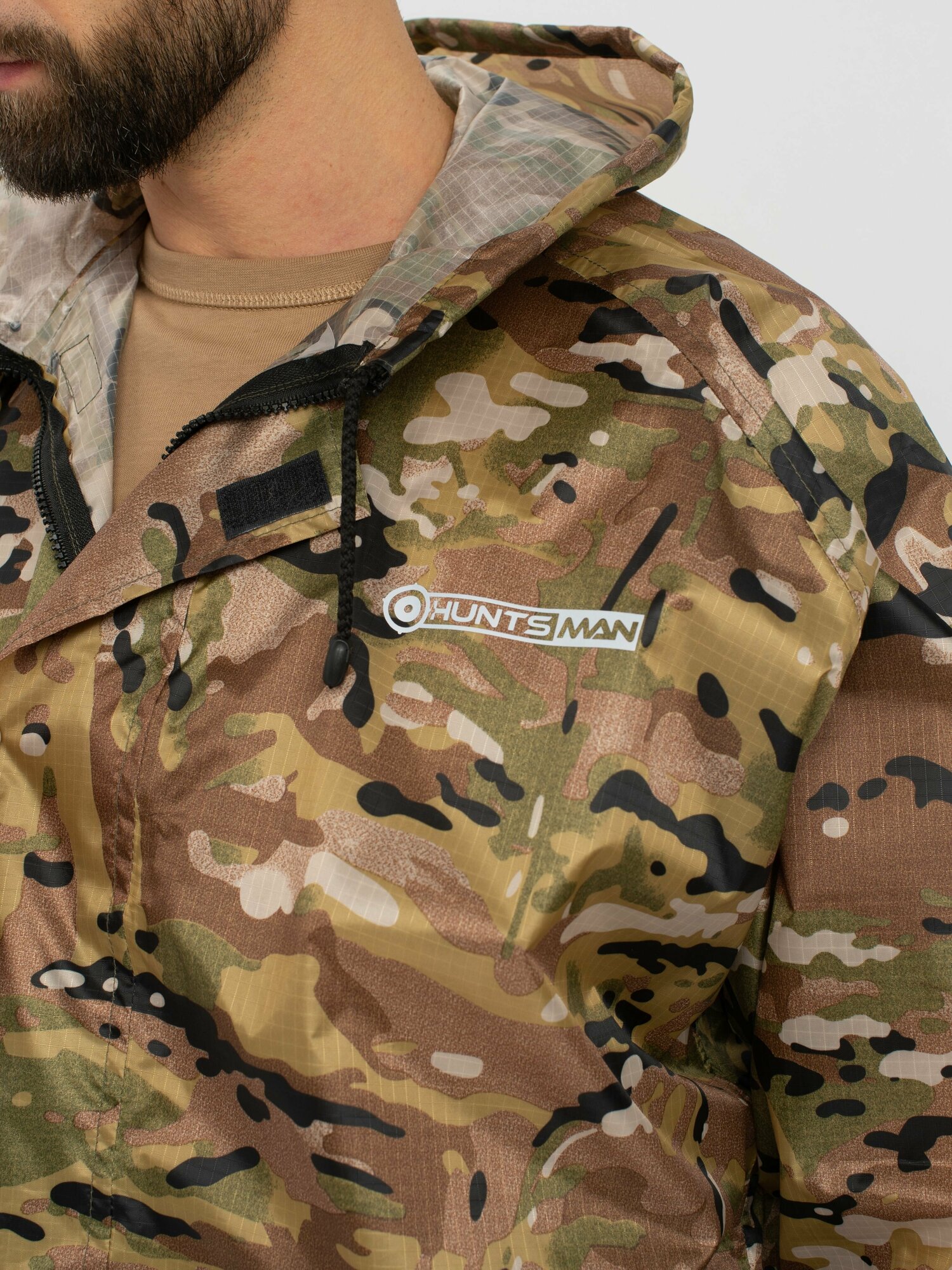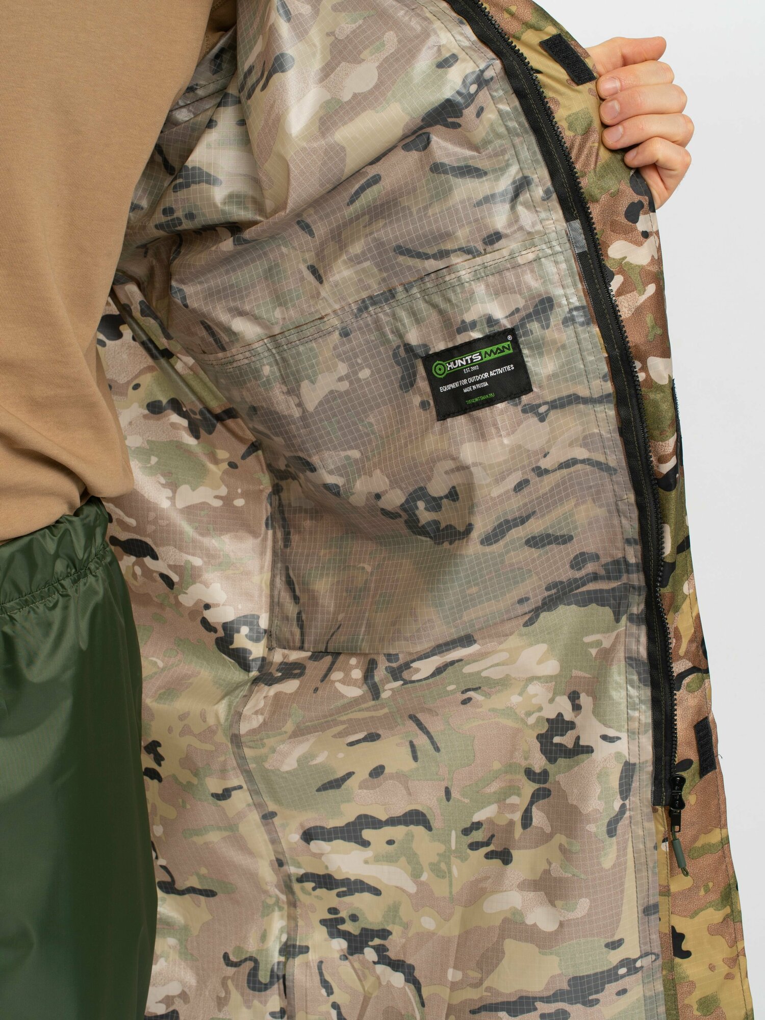Плащ-дождевик с капюшоном мужской Huntsman ВВЗ для рыбалки, охоты влагозащитный, ткань таффета рипстоп 3000, цвет мультикам (р.56-58/182)