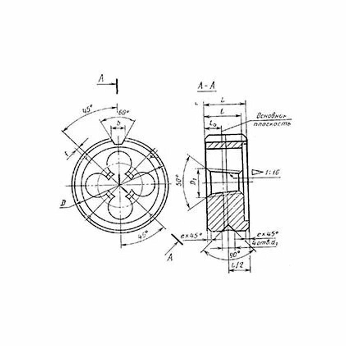 Плашка коническая К 1/2' (NPT) 14 ниток/дюйм - это инструмент, предназначенный для нарезания наружной конической резьбы на трубах и других цилиндрических заготовках. Основные характеристики и особенности: