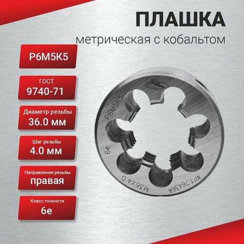 Купить Плашка с кобальтом М 36,0х4,0 ГОСТ 9740-71 P6M5K5 6е, шт с доставкой по всей России. Плашка с кобальтом М 36,0х4,0 ГОСТ 9740-71 P6M5K5 6е, шт: сравнение цен, характеристики, фото, актуальное наличие и цены.