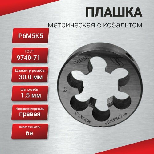Купить Плашка с кобальтом М30,0х1,5 ГОСТ 9740-71 P6M5K5 6е, шт с доставкой по всей России. Плашка с кобальтом М30,0х1,5 ГОСТ 9740-71 P6M5K5 6е, шт: сравнение цен, характеристики, фото, актуальное наличие и цены.