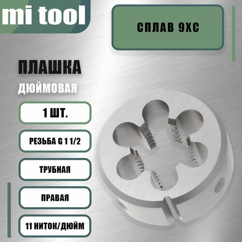 Плашка трубная G 1 1/2 11 ниток/дюйм - это инструмент для нарезания наружной резьбы на трубах диаметром 1 1/2 дюйма. Она изготовлена из высококачественной инструментальной стали и предназначена для профессионального использования.