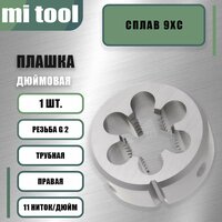 Плашка трубная G 2 11 ниток/дюйм - это инструмент для нарезания наружной резьбы на трубах. Она используется для создания резьбового соединения на трубах диаметром 2 дюйма с шагом резьбы 11 ниток на дюйм.