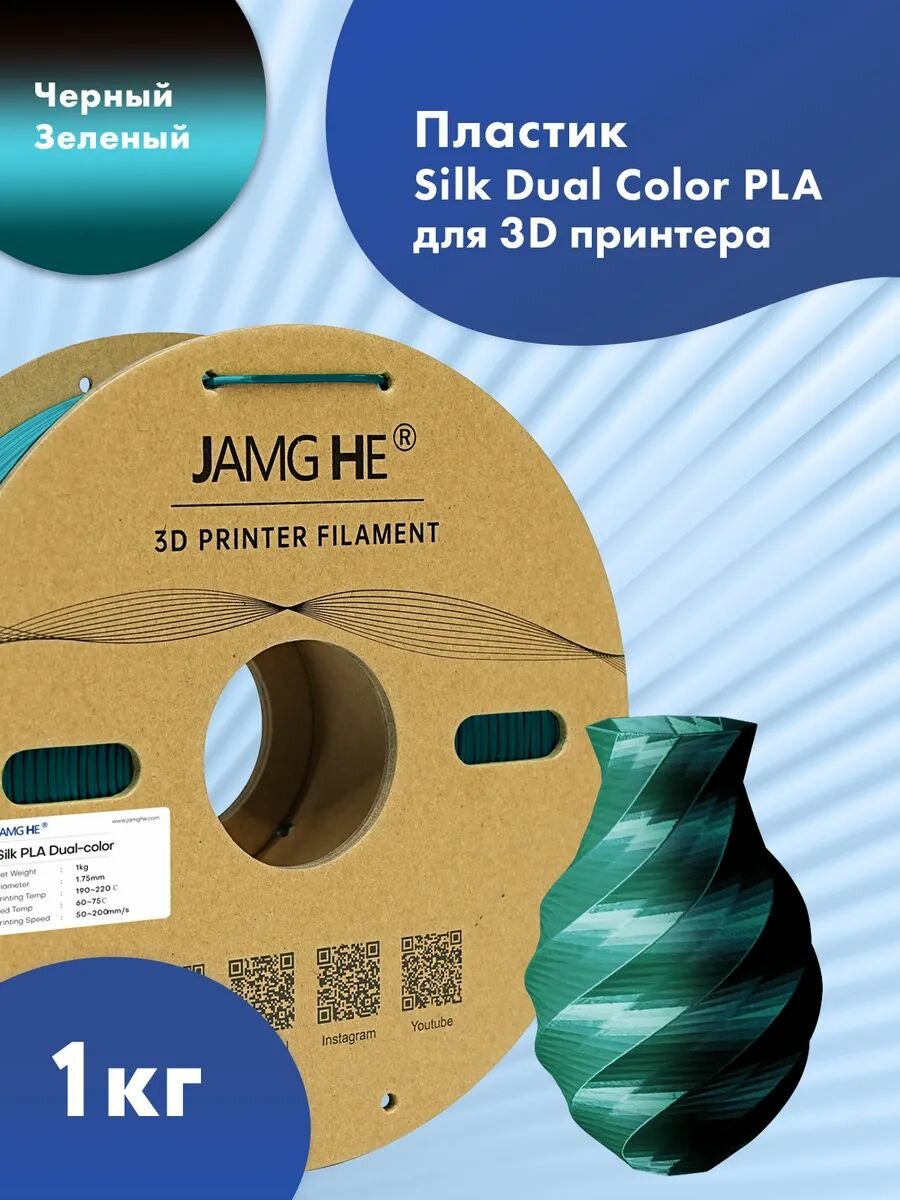 Купить Пластик 1.75 мм для 3D печати Jamg He Silk Dual Color PLA для 3D принтеров Anycubic, Bambulab, Raise, Elegoo, Creality, Qidi, Flyingbear, 1 кг. Черный и зеленый с доставкой по всей России.