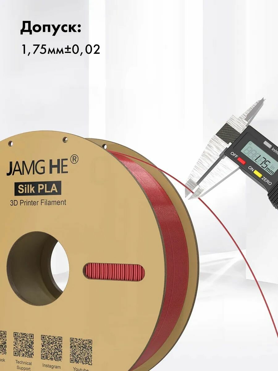 Пластик 1.75 мм для 3D печати Jamg He Silk Like PLA для 3D принтеров Anycubic, Bambulab, Raise, Elegoo, Creality, Qidi, Flyingbear, 1 кг. Красный: сравнение цен, характеристики, фото, актуальное наличие и цены.
