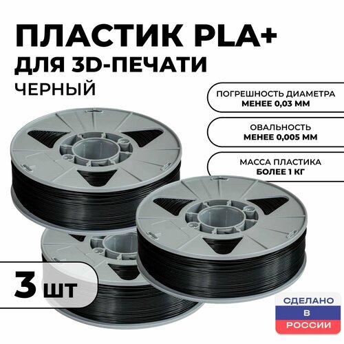 Пластик для 3D принтера Premium PLA (ПЛА) ИКЦ, премиум филамент для 3Д печати, 3 катушки, 1,75 мм, 3 кг, черный: сравнение цен, характеристики, фото, актуальное наличие и цены.