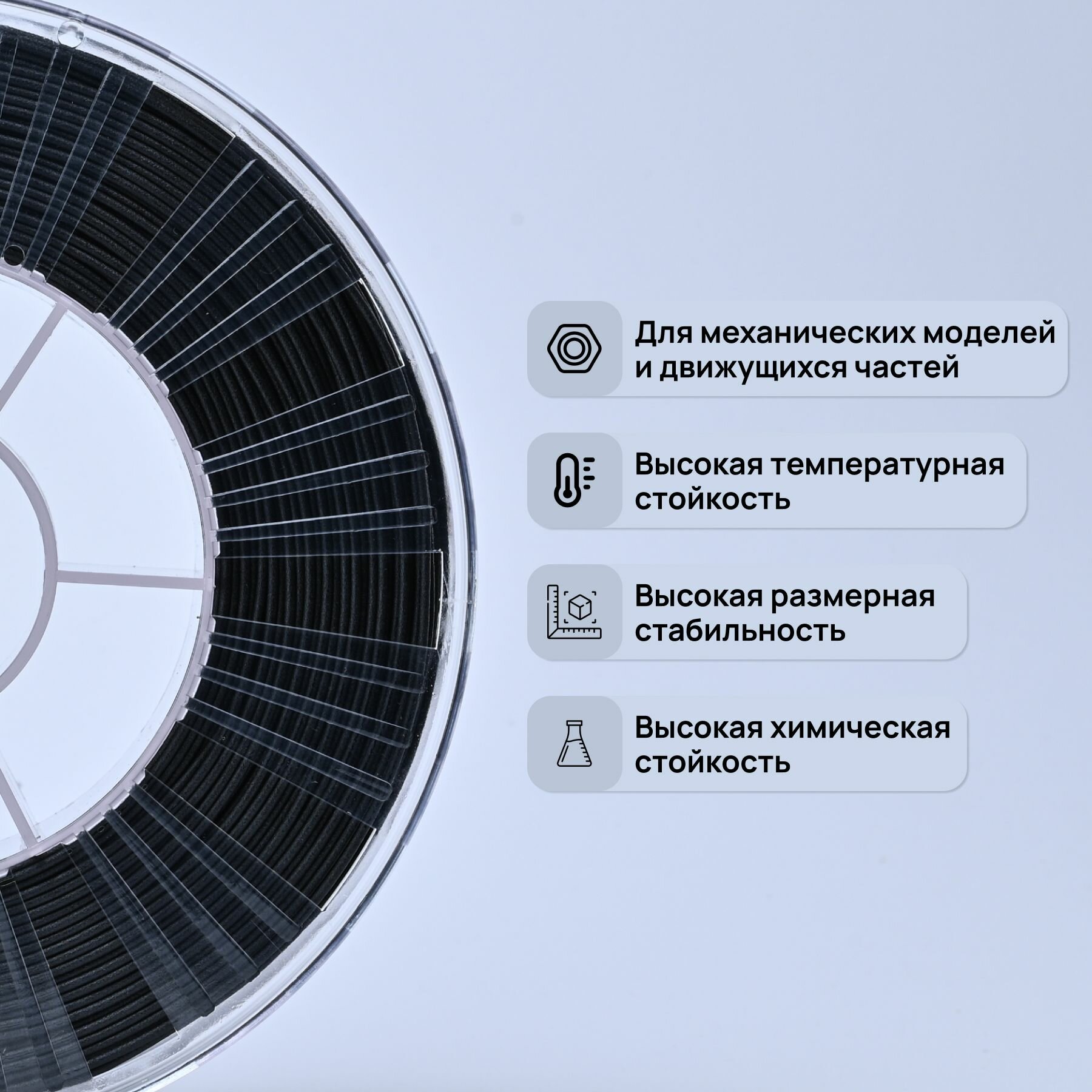 Пластик TPU Total Pro GF-10 от Filamentarno для 3D-принтера TPU Total Pro GF-10 - ударопрочный стеклонаполненный (10%) композит на основе TPU. Часто применяется для печати крупных шестерён, прочных корпусов, механически нагруженных деталей, аэродинамических обвесов для автомобилей. Обладает высокой химической стойкостью к растворам кислот и щелочей, жирам, маслам, ксилолу, дизельному топливу. Ограниченно к бензину, керосину, ацетону, дихлометану. TOTAL GF-10 станет прекрасной альтернативой композитам на основе полиамидов. Отлично поддаётся сверлению, нарезанию резьбы. Преимущества пластика TPU Total Pro GF-10 от Filamentarno: * Ударопрочный * Низкая усадка * высокая химическая стойкость к кислотам, щелочам, жирам, маслам, ксилолу, дизельному топливу * ограниченная стойкость к бензину, керосину, ацетону, дихлометану * поддается механической обработке * высокая температура термостойкости * хорошая межслойная адгезия * высокая абразивная стойкость Технические характеристики пластика TPU Total Pro GF-10 от Filamentarno: * Теплостойкость (min / max)от -50 до +110°С * Температура размягчения по вика 110° * Плотность~1.4 гр/см3 * Твердость по Шору D 85 * Усадка при изготовлении изделий 0.3-0.9% * Количество пластика на катушке 0,75 кг ~215 м Параметры печати пластика TPU Total Pro GF-10 от Filamentarno: * Температура сопла 220-245°С * Температура печатного стола 60-100° * Обдув модели по необходимости 20-60% * Скорость печати до 100 мм/с * Подача пластика (Flow)95-100% * Диаметр сопла от 0.4 мм (min) * Мин. высота слоя 0.1 мм Форма выпуска пластика APU Total Pro GF-10 от Filamentarno: * катушки D200 по 0,75 кг (стандартные катушки в коробках) * катушки D300 по 2,25 кг * мотки 50 метров Общие рекомендации по пластику TPU Total Pro GF-10 от Filamentarno: 1. Обязательно рекомендуется сушить перед печатью 4-5 ч. при температуре 65-75°С. 2. Внимание! Пластик абразивен, рекомендуется печатать с использованием стального сопла. Пластик TPU Total Pro GF-10 от Filamentarno для 3D-принтера отличный выбор для создания прочных и надежных изделий