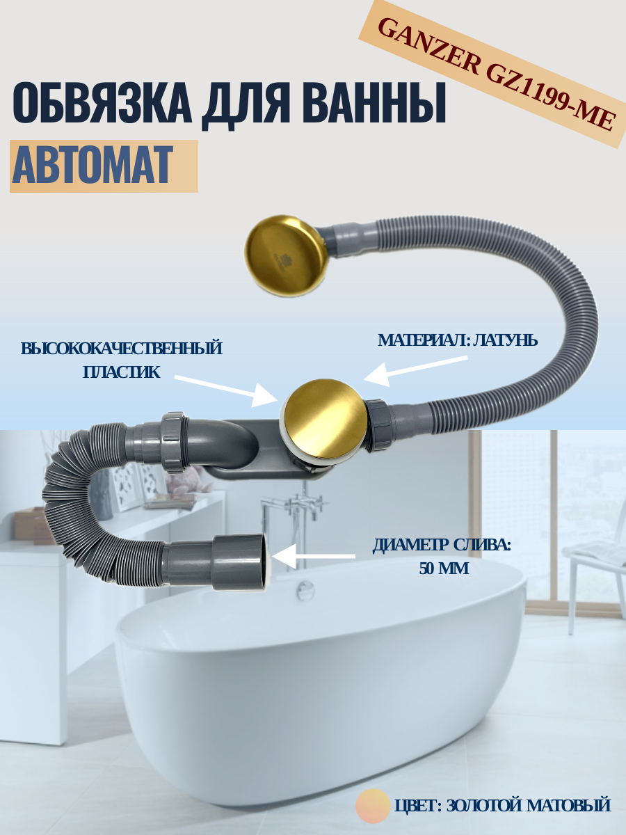 Пластиковая обвязка (автомат) для ванны Ganzer GZ1199-ME цвет матовое золото: сравнение цен, характеристики, фото, актуальное наличие и цены.