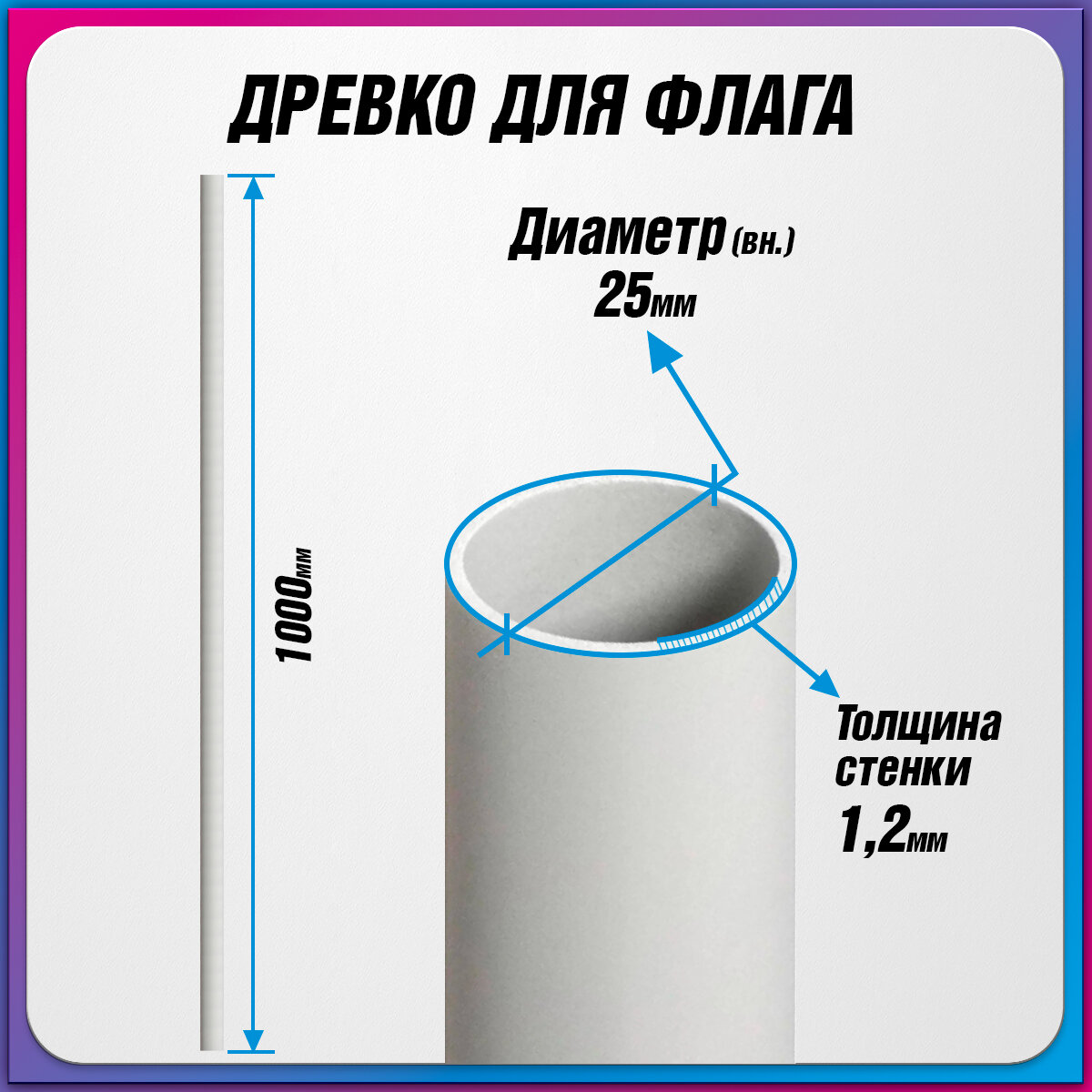 • Длина 150 см. • Диаметр 2.5 см. • Вес 200 грамм. • Подходит для флагов: 70x105 см, 90x135 см, 100x150 см.