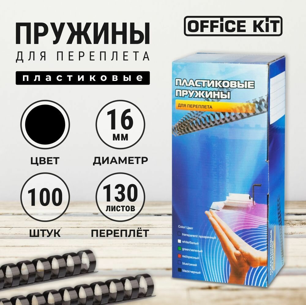 Пластиковые пружины для переплёта Office Kit, диаметр 16 мм, черные, в уп.100 шт.: сравнение цен, характеристики, фото, актуальное наличие и цены.