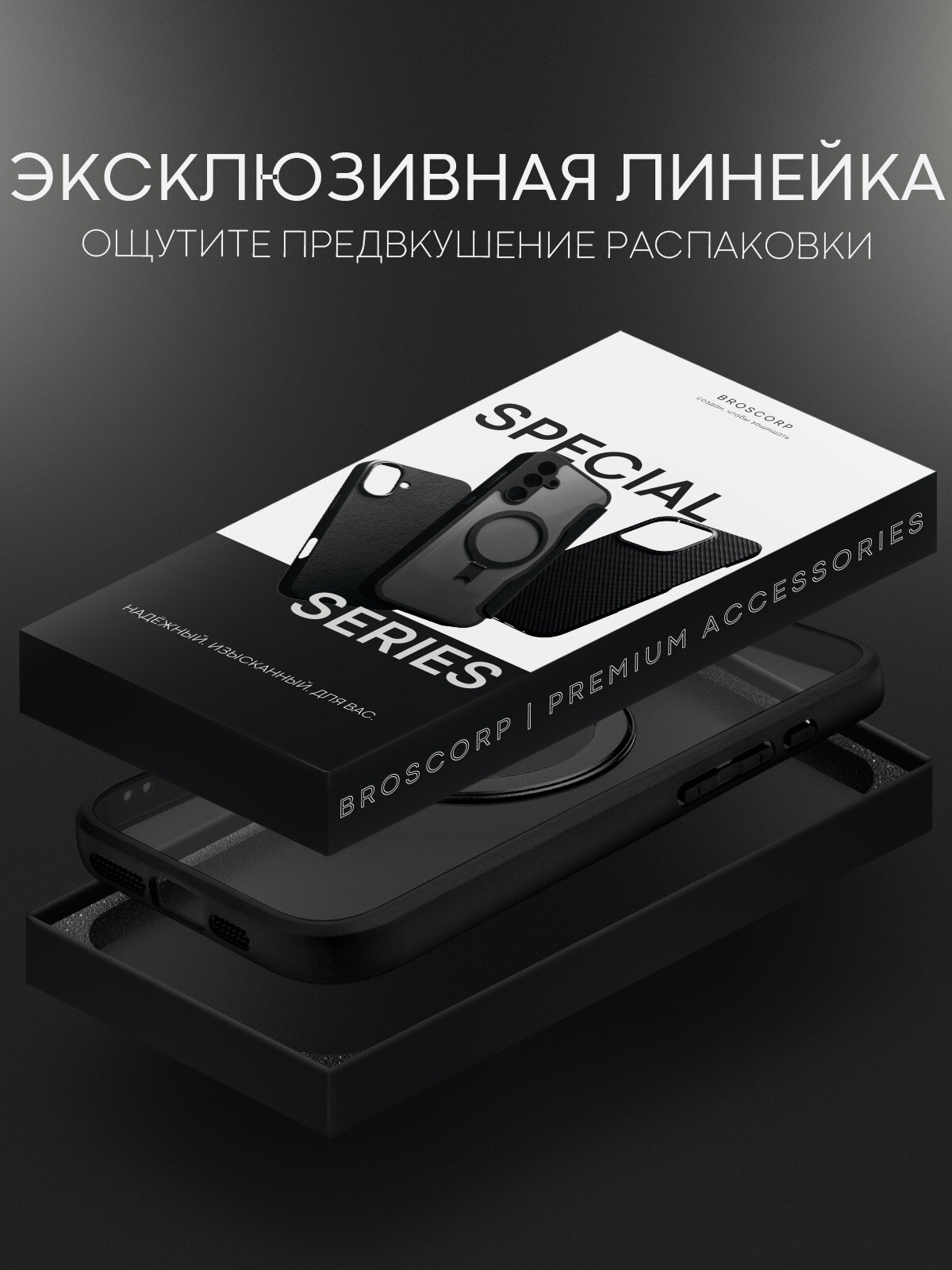 Оригинальный чехол для Apple iPhone 16 Pro Max российского бренда BROSCORP покоряет своим эстетичным видом. Он состоит из пластика (поликарбоната) и термополиуретана (TPU): сочетание двух этих материалов дарит уникальный опыт использования, где сошлись защита и красота.