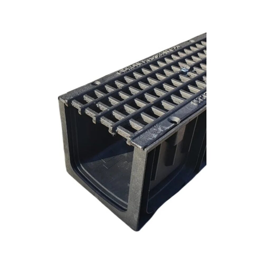 Лоток пластиковый DN150 H185 мм с чугунной ячеистой решеткой и крепежом класс C250: сравнение цен, характеристики, фото, актуальное наличие и цены.