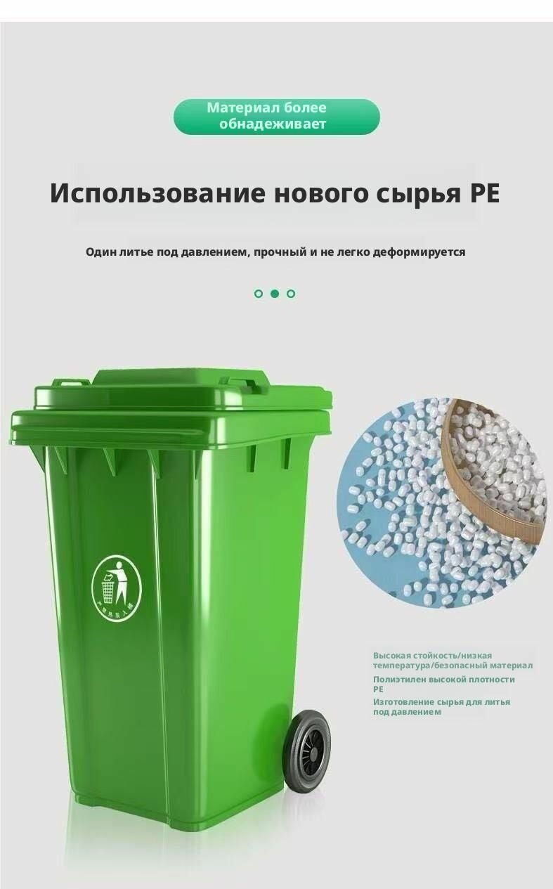 | Комплектация | Мусорный бак контейнер, крышка, колеса. |