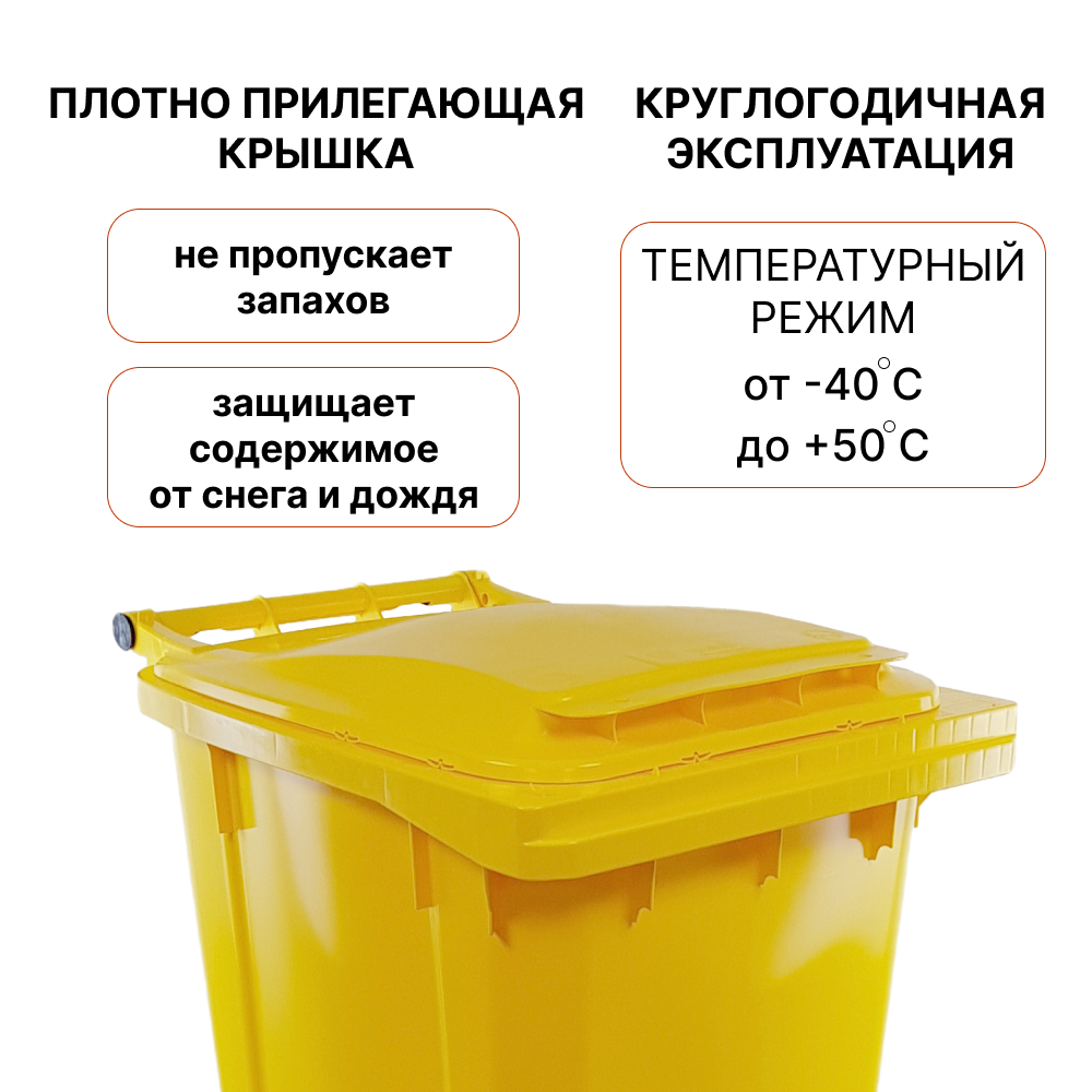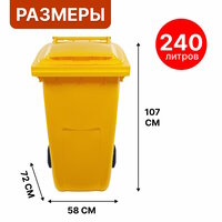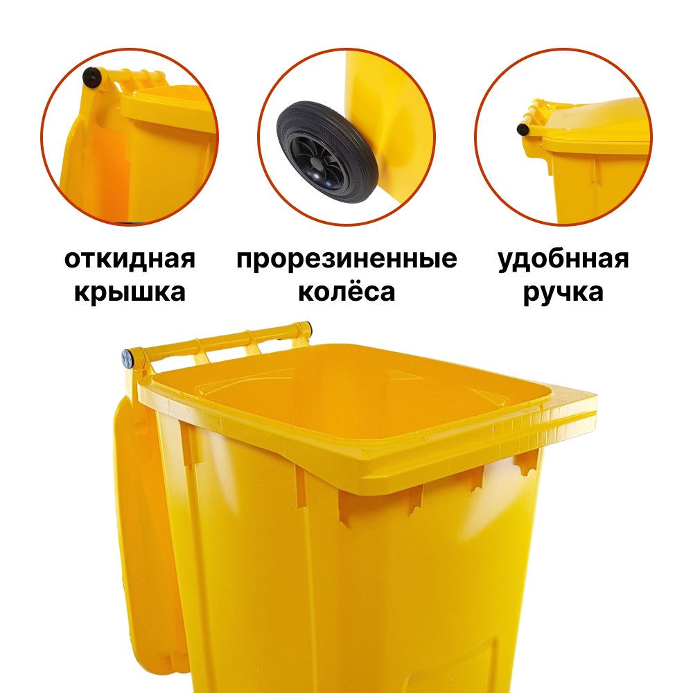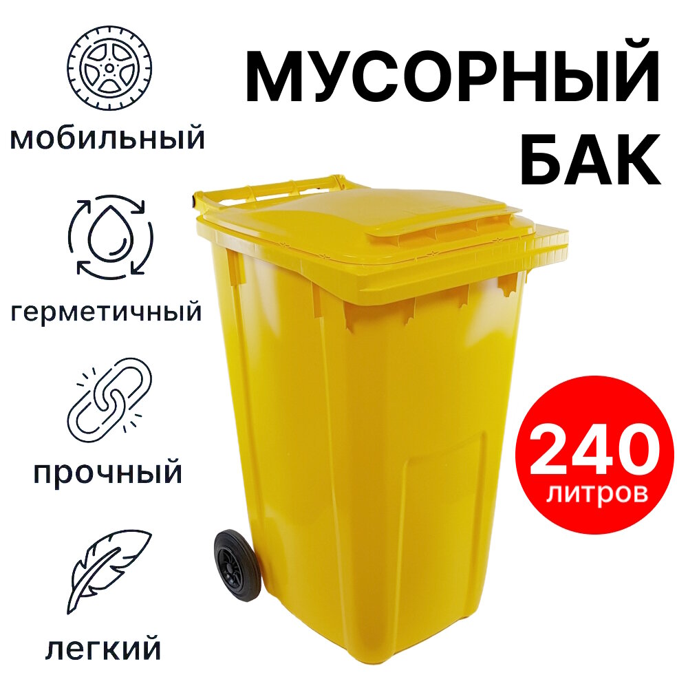 Мусорный бак 240 литров уличный на колесах с крышкой, контейнер для мусора (Желтый): сравнение цен, характеристики, фото, актуальное наличие и цены.