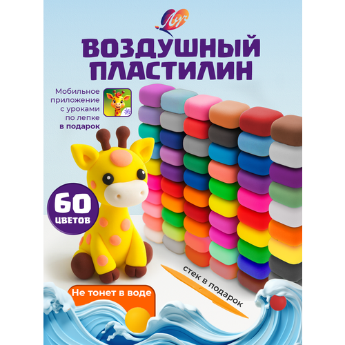 В наборе мягкого воздушного пластилина 60 цветов: от нежных до более насыщенных, что дает возможность создавать яркие и красочные поделки.