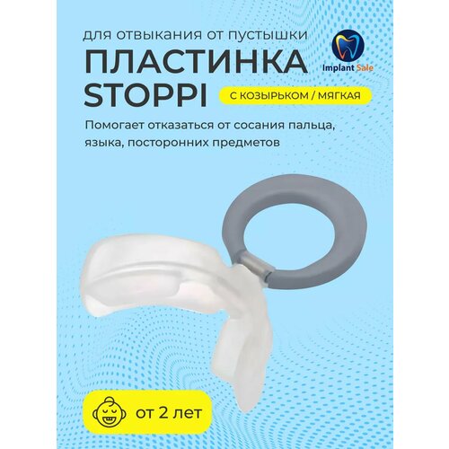 Пластинка Stoppi предлагается детям начиная с 2-х летнего возраста в случае длительного сосания пустышки или пальца, провоцирующего возникновение открытого прикуса, для скорейшего и безболезненного отвыкания ребенка от этих вредных привычек.