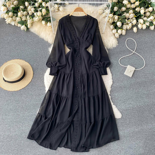 Элегантное и утонченное кружевное платье высокого класса в стиле ретро - это воплощение французского королевского шика и изысканности.