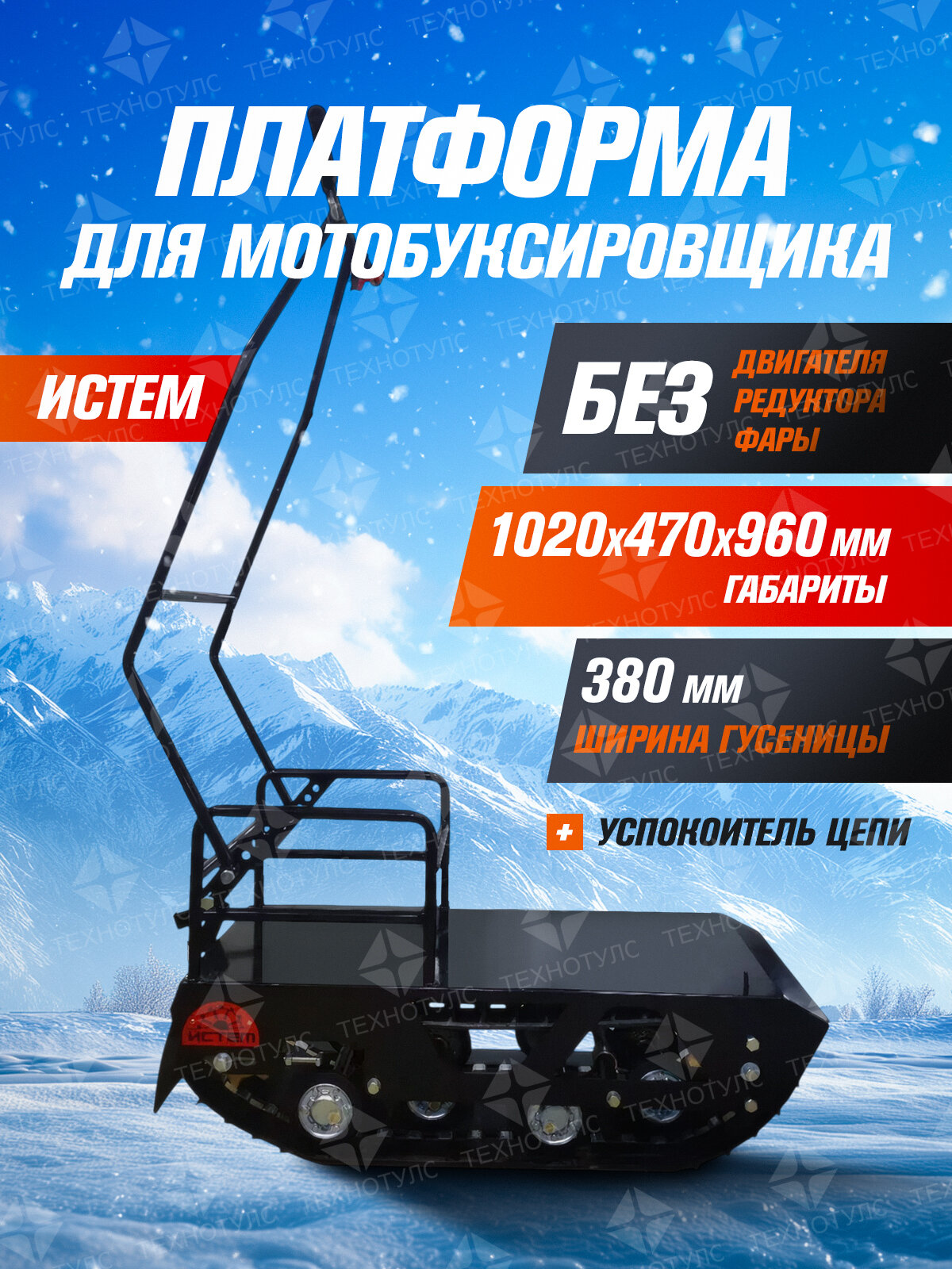 | Комплектация | Мотобуксировшик (БЕЗ ДВИГАТЕЛЯ И РЕДУКТОРА) -1 Руководство по эксплуатации мотобуксировщика Истем 380 - 1 |