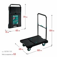 Купить Платформенная тележка, KRAFTOOL до 150 кг, платформа 68,0 х 49,5см, складная рукоятка, складные колёса d10см с доставкой по всей России.