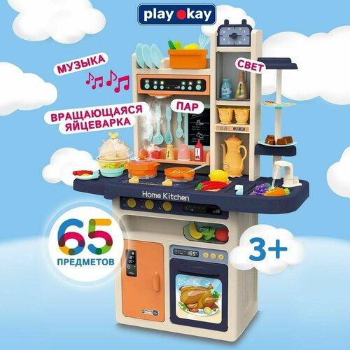 Купить Детская кухня игрушка с маркерной доской, вращающейся яйцеваркой, таймером, паром, музыкой и светом, развивающая для ребенка, Play Okay игровой набор для мальчика и девочки, 93.5 см 65 предметов с доставкой по всей России.