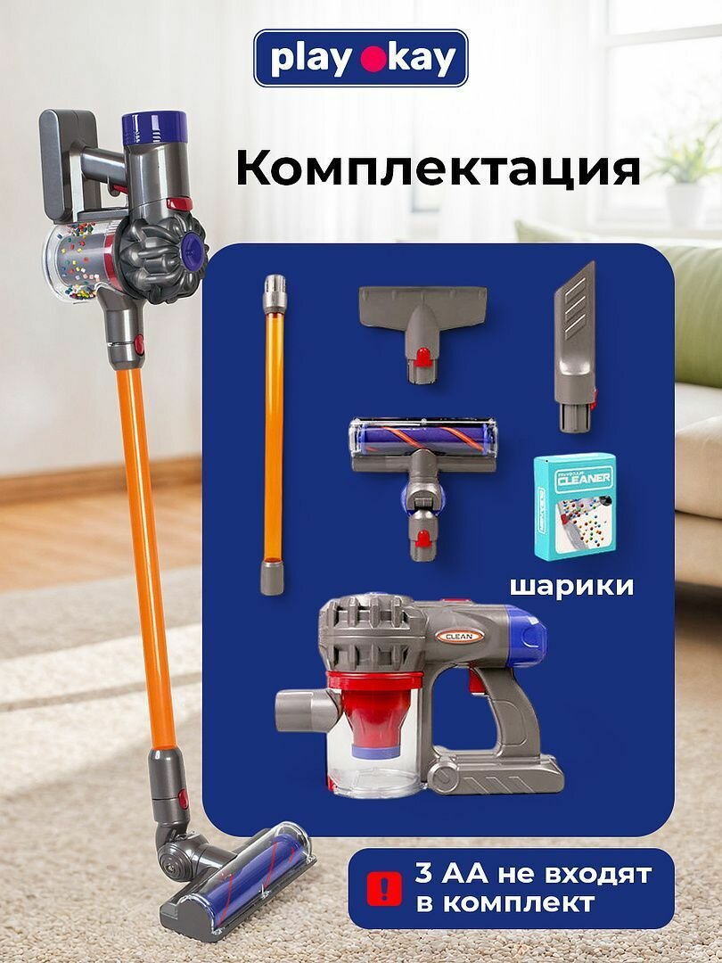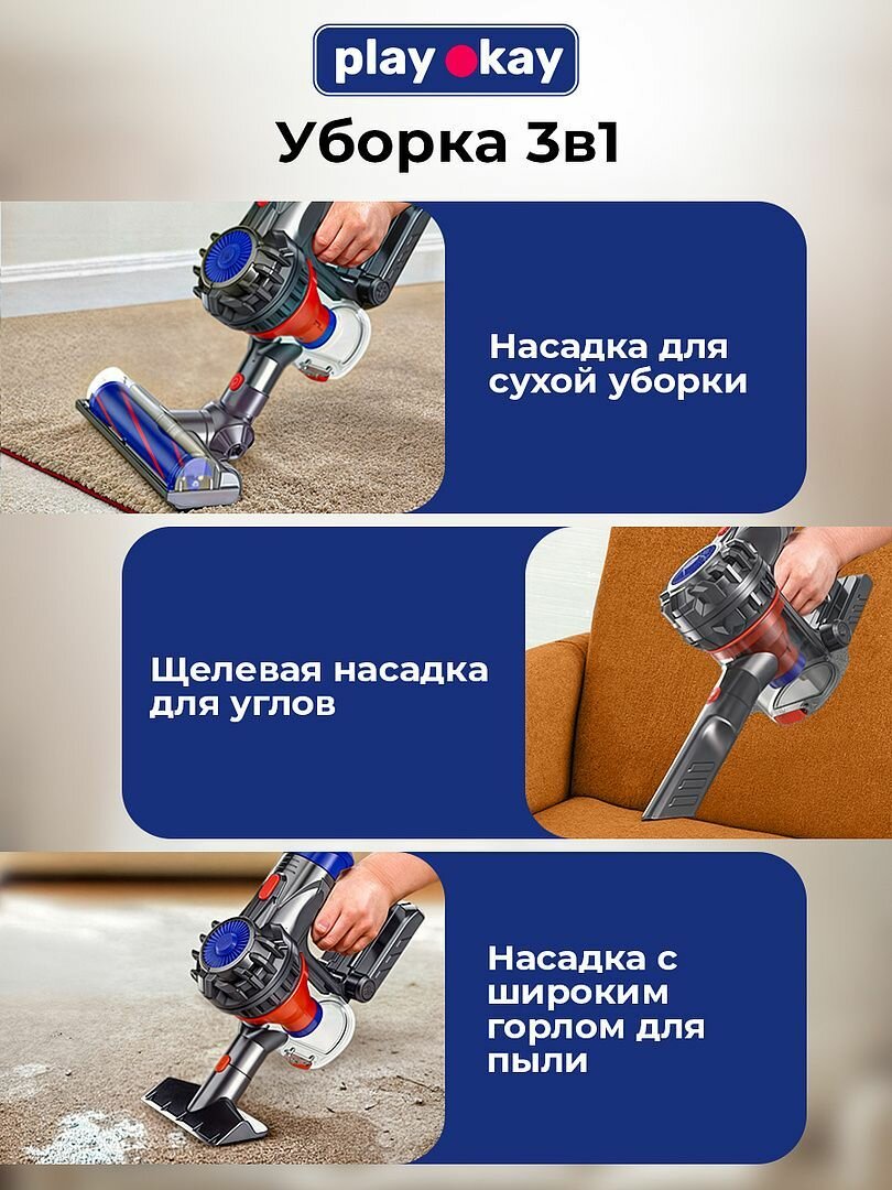 Купить Play Okay Пылесос игрушечный детский вертикальный ручной игровой набор игрушка для уборки для детей девочек и мальчиков 3+ с доставкой по всей России.