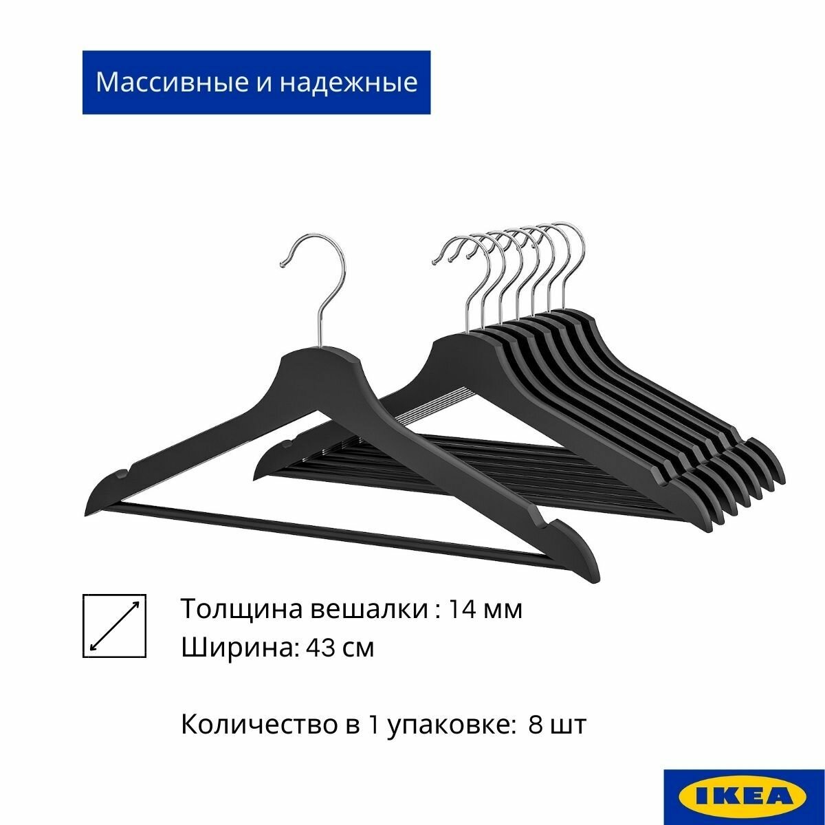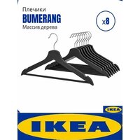 Купить Плечики для одежды деревянные IKEA BUMERANG черные набор 8 штук, вешалки для тяжелой одежды, прочные и гладкие с доставкой по всей России.