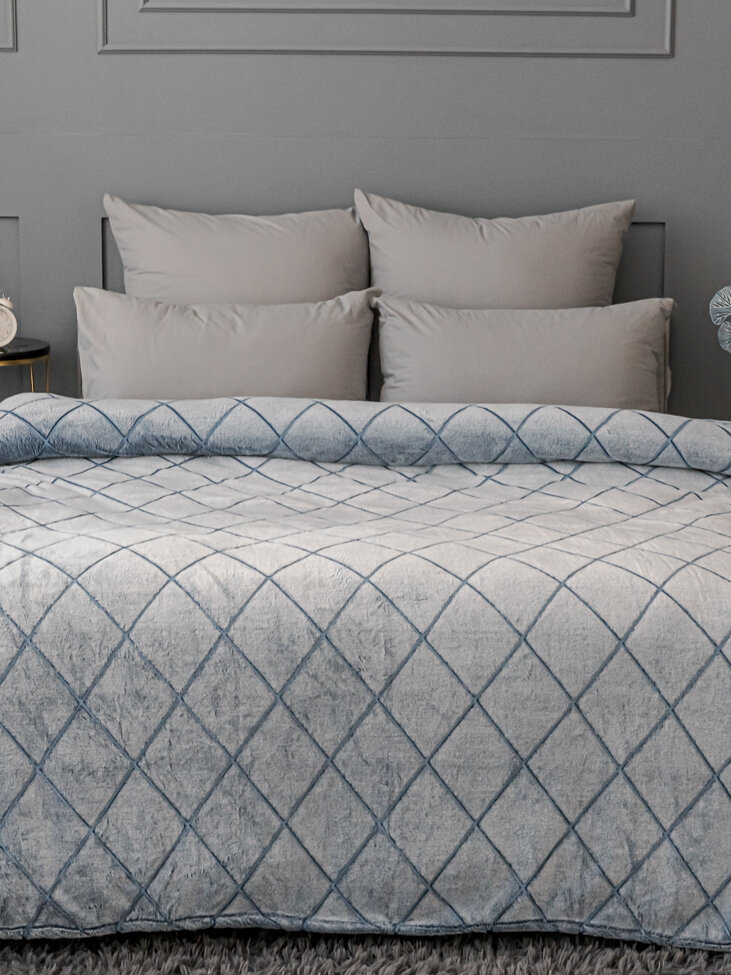 Плед велюр стеганный темно-серый, размер 220Х240