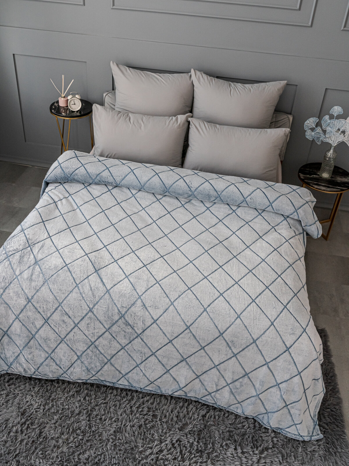 Плед 220х240 Павлина SKANDI Ромбы серый однотонный на диван на кровать