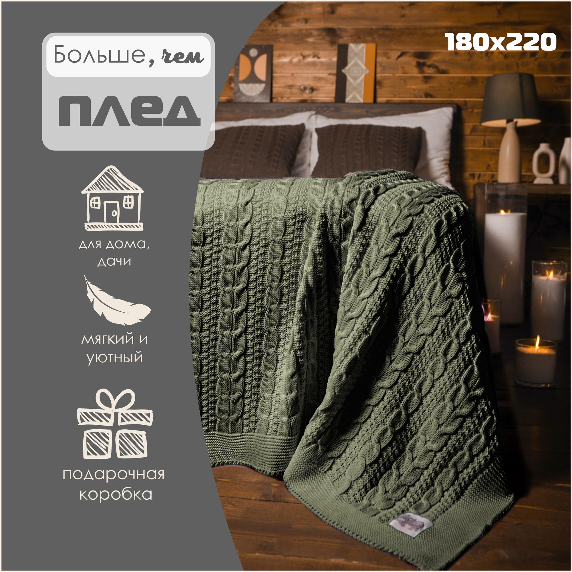 Плед 180х220, вязаный, Warm Whiff, хаки, хлопок, покрывало на кровать, на диван, на кресло, в подарочной коробке: сравнение цен, характеристики, фото, актуальное наличие и цены.