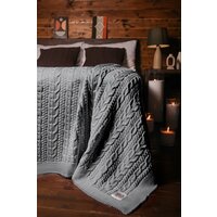 Купить Плед 180х220, вязаный, Warm Whiff, светло-серый, хлопок, покрывало на кровать, на диван, на кресло, в подарочной коробке с доставкой по всей России.