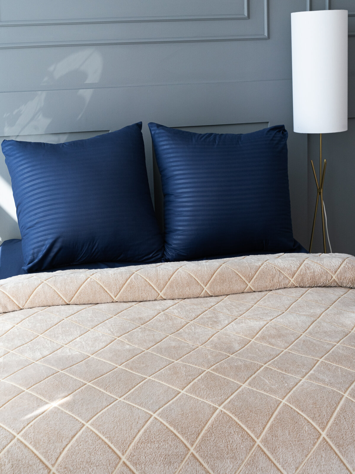 Плед велюр стеганный бежевый, размер 220Х240