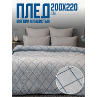 Плед 220х240 Павлина SKANDI Ромбы серый однотонный на диван на кровать