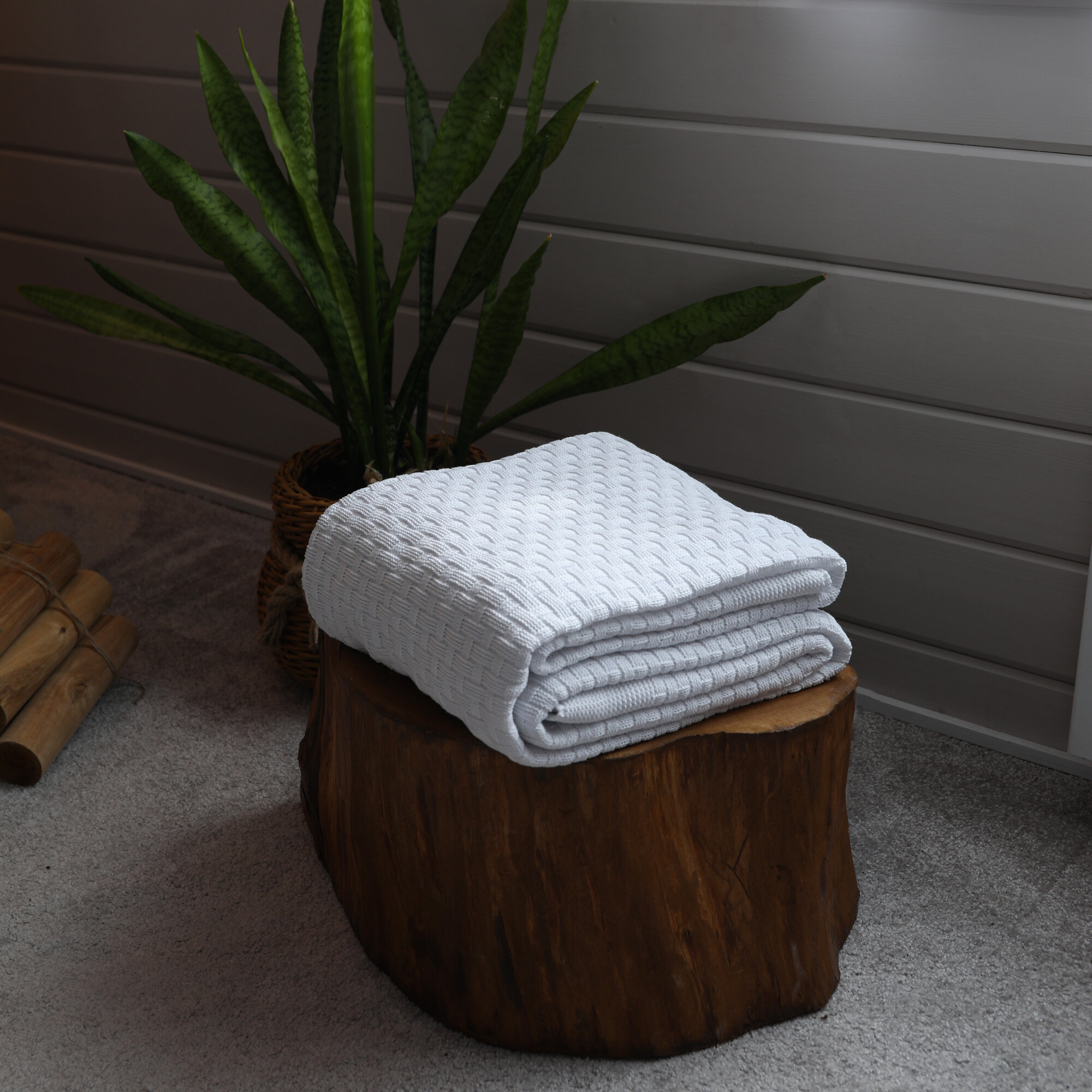Купить Плед 220х240, вязаный, Warm Whiff, белый, хлопок 100%, покрывало на кровать, на диван, на кресло, большой с доставкой по всей России.
