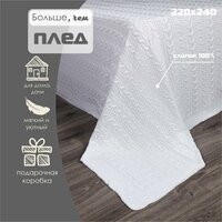 Плед 220х240, вязаный, Warm Whiff, белый, хлопок 100%, покрывало на кровать, на диван, на кресло, большой, тонкий: сравнение цен, характеристики, фото, актуальное наличие и цены.