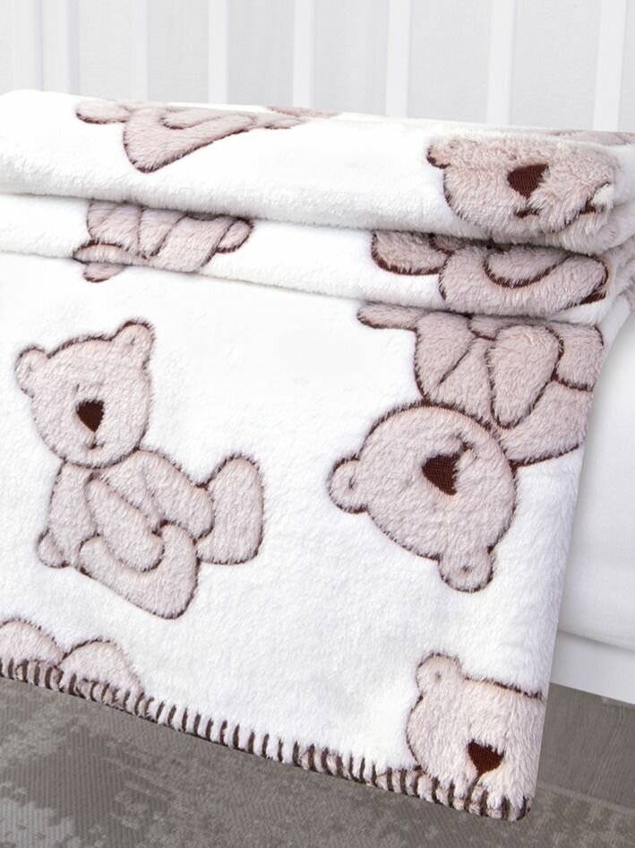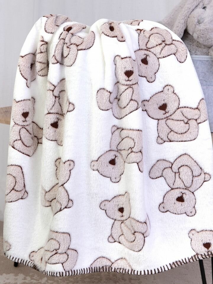 Купить Плед детский для новорожденных плюшевый и мягкий100х150 см «Мишки на белом» с доставкой по всей России.