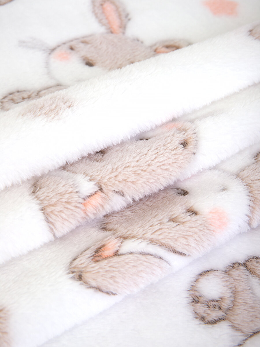 Купить Плед детский для новорожденных в кроватку, плюшевый и мягкий 100х150 см «Зайки на белом» с доставкой по всей России.