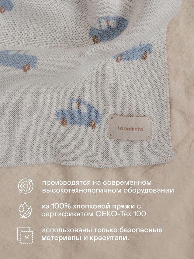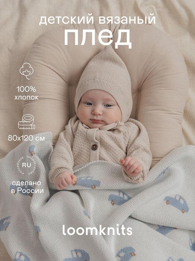 Плед для новорожденных от Loomknits – это сочетание комфорта, практичности и стиля. Мягкий и приятный на ощупь материал подарит вашему малышу уют и тепло, а милые расцветки порадуют глаз. Детский плед из премиального хлопка – незаменимую вещь для каждой мамы и малыша. Этот мягкий плед станет любимым аксессуаром для вашего крохи с первых дней жизни. Мягкий пледик для малышей — идеальное решение на выписку из роддома или ежедневные прогулки. Теплый аксессуар подарит комфорт новорожденному даже в зимний период. Такой детский плед подойдет в коляску или кроватку, а также станет замечательным подарком на рождение малыша. Вязаная структура изделия создает дополнительную воздушность, а милые детали оформления делают его привлекательным для малышей и родителей. Плюшевый материал надежно защищает от холода. Плед легко впишется в коллекцию вещей для новорожденного и украсит детскую комнату. Он подходит для малышей любого возраста благодаря универсальному размеру и натуральному составу.