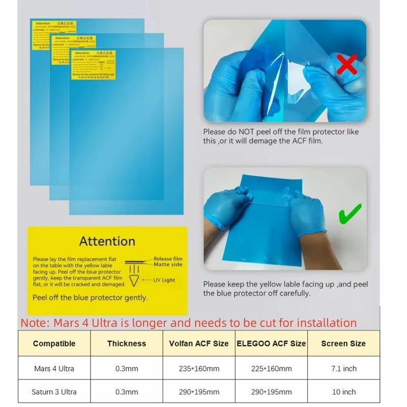 - Совместимость: Пленка была специально разработана для 3D-принтера ELEGOO Mars 4 Ultra, что обеспечивает идеальную подгонку и стабильную работу вашего оборудования.
