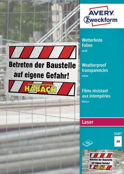 Купить Пленка Avery Zweckform [3487] влагостойкая глянцевая (белая, А4, 100 листов) с доставкой по всей России.