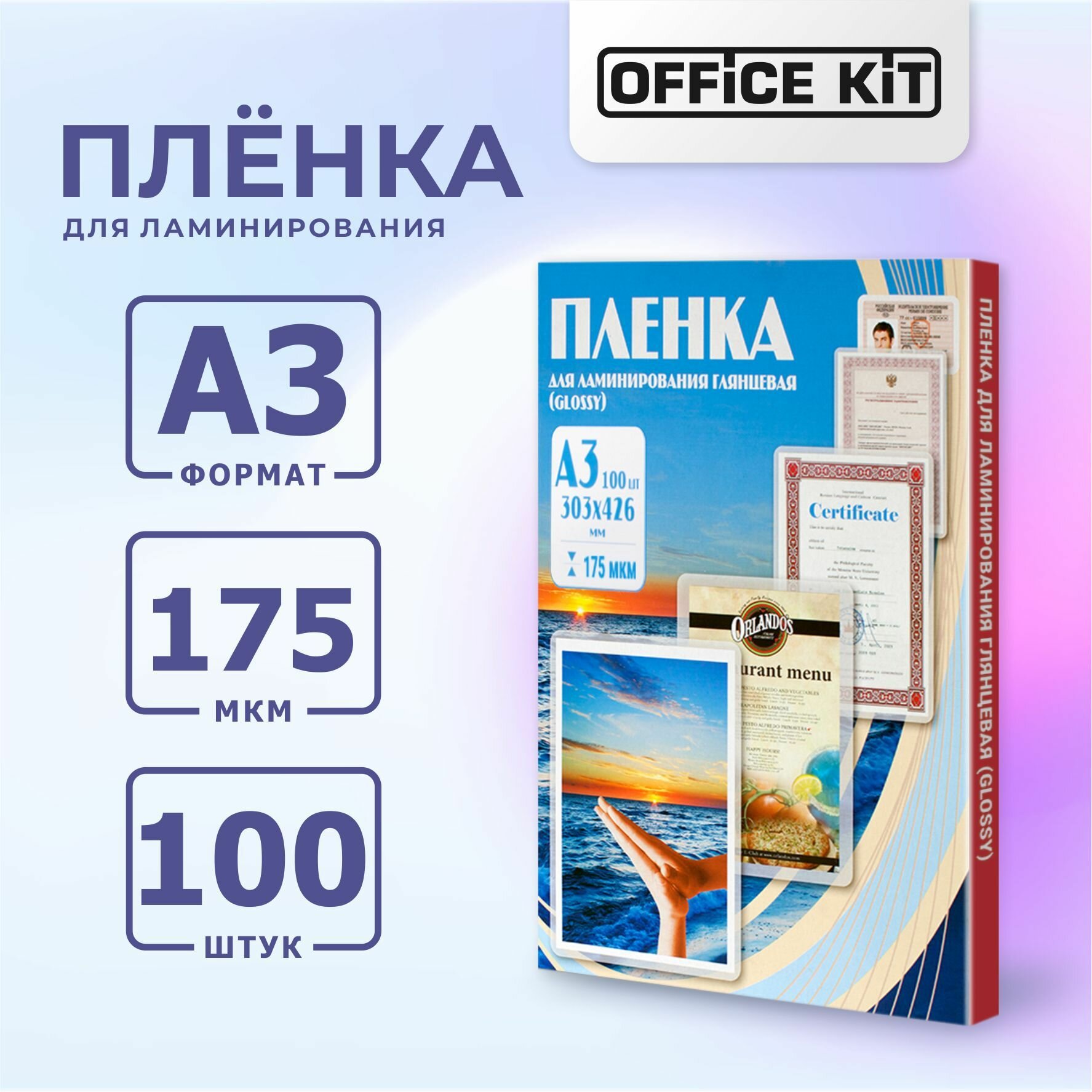 Пленка для ламинирования Office Kit формат А3, толщина 175 мкм, упаковка 100 шт.: сравнение цен, характеристики, фото, актуальное наличие и цены.