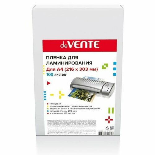 Пленка для ламинирования deVENTE 216х303 мм А4, 100 мкм 100 л с клейким слоем (4122313)