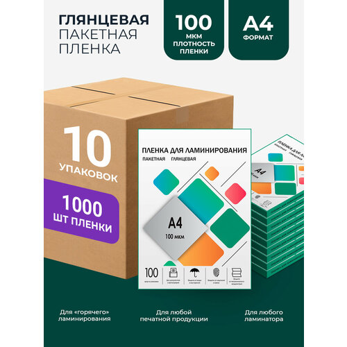 Набор: пакетная глянцевая пленка для горячего ламинирования - 10 упаковок по 100 шт, формат А4 плотностью 100 мкм. В каждой упаковке 100 штук листов для ламинирования. Подходит для ламинатора любой марки. Заламинированный материал защищен от механических воздействий (нежелательных надписей, потертостей), от влаги и выгорания цвета. Пленка придает бумаге презентабельный внешний вид, делает ее более жесткой. Чем больше мкм в пленке - тем жестче готовый материал. Данные офисные расходные принадлежности часто требуются в работе. Защитные пластиковые листы a4 для ламинирования гелеос отличаются наиболее прочной проклейкой швов и максимально возможно сохраняют герметичность при использовании на улице в любую погоду. Подойдут для хранения любой печатной продукции: развивающие детские карточки или учебные материалы, фотографии или рисунки, визитки или бейджи, удостоверения или права. Можно заламинировать проездные документы и этикетки, ценники и школьные дипломы. А так-же, меню и плакаты, обложки, карты и сертификаты и многое другое. Ламинирование детских рисунков, учебных пособий, памяток школьника и офисных презентаций - поможет защитить их на долгие годы и сделает краски еще более насыщенными. Идеальное решение для воспитателей и учителей. Вы сможете оформить свой фотоальбом в домашних условиях. Ламинация документов, ценников, справок, грамот и рецептов - спрятанная под ламинирующую пленку информация, останется в целости и сохранности, повысит износостойкость, защитит изображения от выгорания, случайно пролитой жидкости и придаст фотографиям глянец. Комплект подходит как вариант подарка, так как ее активно используют для работы в офисе, в школе, дома или в детском саду. Такую канцелярию можно подарить подруге и учительнице, коллегам и ученикам, классному руководителю и студенту для работы, учебы и творчества детей. Под брендом гелеос представлено большое разнообразие канцелярских товаров, которые позволяют придать вашим документам презентабельный эстетичный вид.
