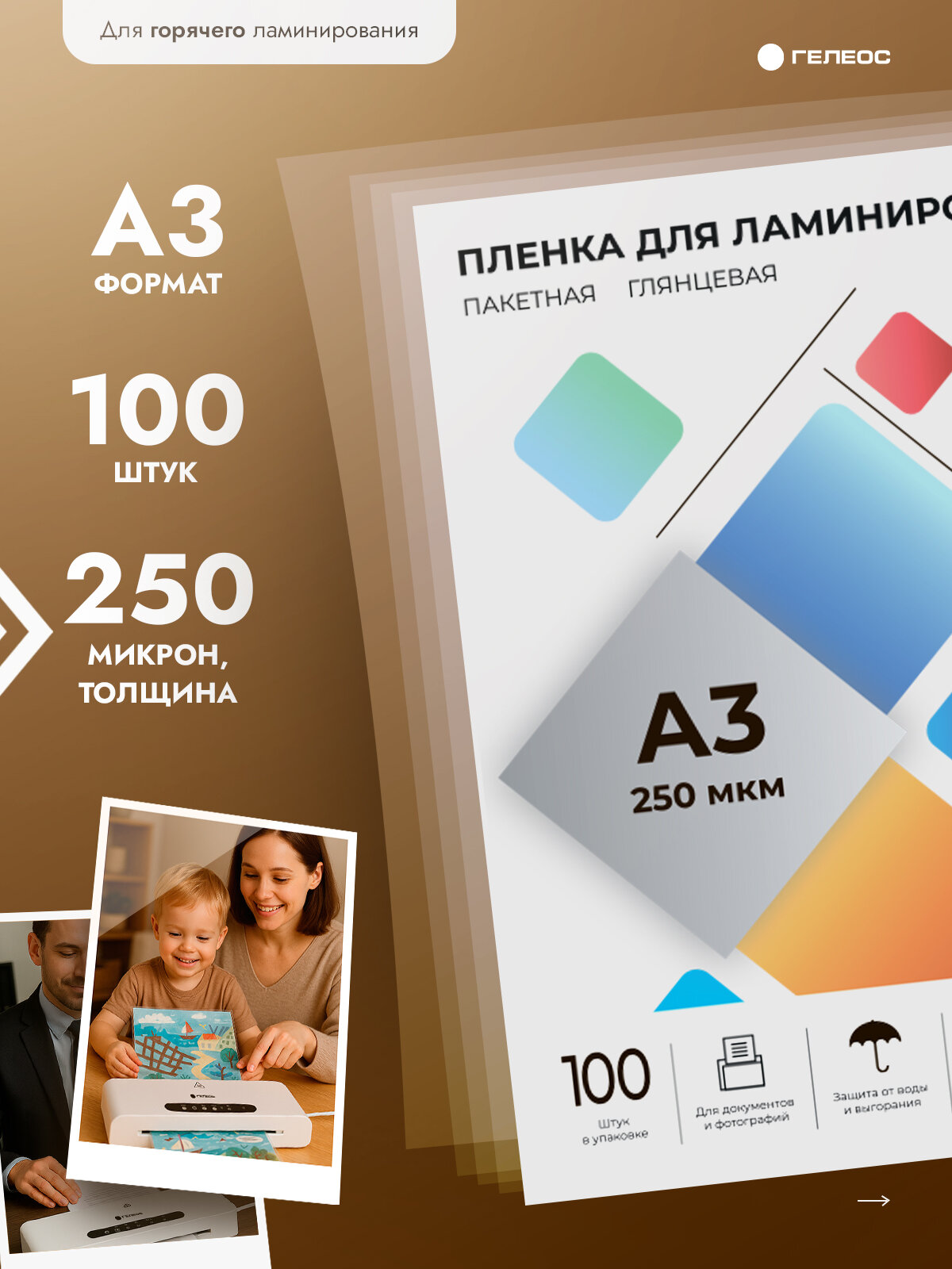 Купить Пленка для ламинирования гелеос, A3, 250 мкм, 100 штук, глянцевая с доставкой по всей России. Пленка для ламинирования гелеос, A3, 250 мкм, 100 штук, глянцевая: сравнение цен, характеристики, фото, актуальное наличие и цены.