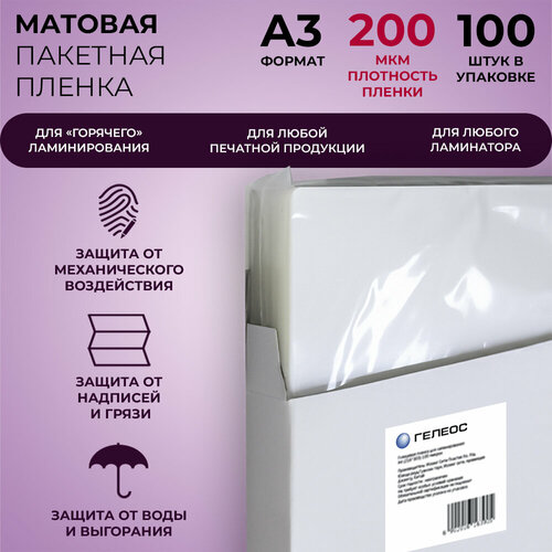 Купить Пленка для ламинирования матовая, ГЕЛЕОС LPA3-200M, A3, 200 мкм, 100 штук с доставкой по всей России. Пленка для ламинирования матовая, ГЕЛЕОС LPA3-200M, A3, 200 мкм, 100 штук: сравнение цен, характеристики, фото, актуальное наличие и цены.