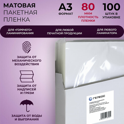 Купить Пленка для ламинирования матовая, ГЕЛЕОС LPA3-80M, A3, 80 мкм, 100 штук с доставкой по всей России. Пленка для ламинирования матовая, ГЕЛЕОС LPA3-80M, A3, 80 мкм, 100 штук: сравнение цен, характеристики, фото, актуальное наличие и цены.