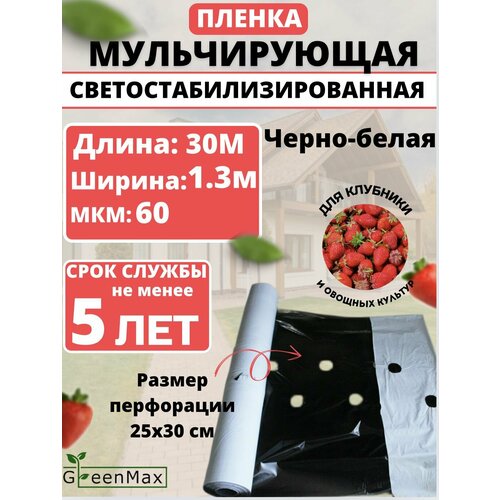 Пленка для мульчирования с перфорацией, черно-белого цвета - разработана для покрытия почвы. Черно-белая мульчирующая пленка широко используется для выращивания клубники, садовой земляники и других овощных и ягодных культур, белая поверхность пленки отражает солнечные лучи, тем самым защищая растения и уже созревшие плоды от перегрева и ожогов при контакте с пленкой, этот вариант подходит для регионов с высоким уровнем ультрафиолетового излучения, внутренняя черная сторона абсолютно непроницаема для света и отлично предотвращает рост сорняков, а также защищает почву от пересыхания. Созревание плодов и ягод при использовании мульчирующей пленки происходит быстрее, так как температура земли сохраняется выше, что положительно влияет на развитие всей корневой системы. Скапливание влаги не позволяет произойти затвердеванию верхнего слоя почвы и обмен веществ в растениях сильно улучшается.