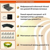 Купить Пленочный электрический теплый пол под ламинат, линолеум, паркет 10м. кв. с черным умным wi-fi сенсорным терморегулятором. Инфракрасная плёнка 10 м2 с доставкой по всей России.