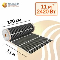 Купить Пленочный электрический теплый пол под ламинат, линолеум, паркет 11м. кв. с черным электронным терморегулятором. Инфракрасная пленка 11 м2 ширина 100 см с доставкой по всей России.