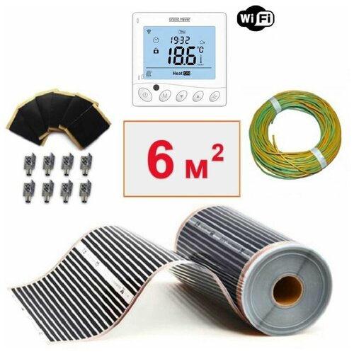 Купить Пленочный электрический теплый пол под ламинат , линолеум , паркет 6м. кв. с wi-fi терморегулятором. Инфракрасная пленка 6 м2 с доставкой по всей России.