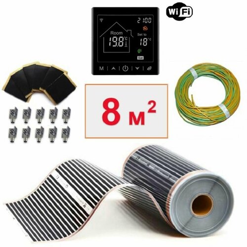 Купить Пленочный электрический теплый пол под ламинат, линолеум, паркет 8м. кв. с умным черным wi-fi терморегулятором. Инфракрасная пленка 8 м2 с доставкой по всей России. Пленочный электрический теплый пол под ламинат, линолеум, паркет 8м. кв. с умным черным wi-fi терморегулятором. Инфракрасная пленка 8 м2: сравнение цен, характеристики, фото, актуальное наличие и цены.